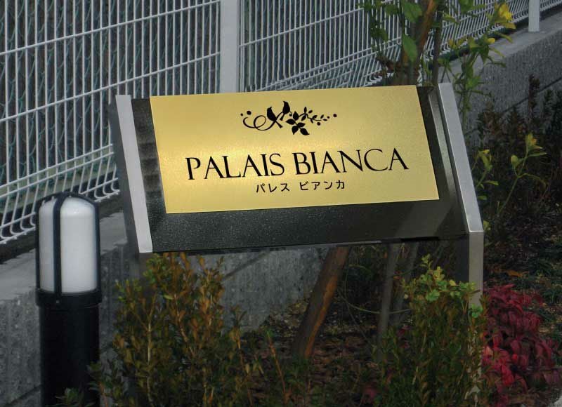 アパートマンションの銘板としてはもちろん商業用、企業様の看板としてもお使いいただけます。