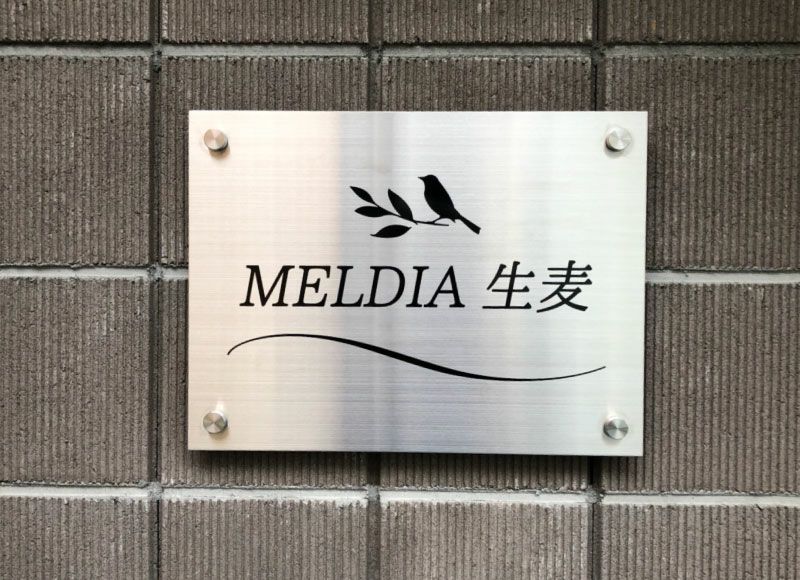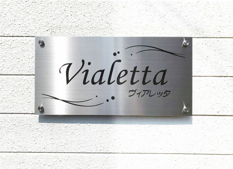 おしゃれなアパート看板 ステンレス銘板、耐久性が良いステンレス素材のマンション看板、会社の銘板としてもおすすめ