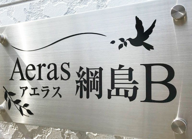 アパート看板 耐久性が良いステンレス素材のマンション看板、会社の銘板としてもおすすめ