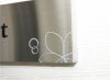 コンパクトな表情と存在感を持ち合わせたモダンなステンレス銘板。