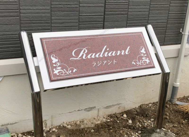 高級感のあるマンション看板、アパート看板 ステンレス銘板、おしゃれなアパート銘板、存在感がある看板、会社の銘板としてもおすすめ