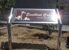 名称面板:赤御影石  フレーム・支柱:ステンレス鏡面仕上げ