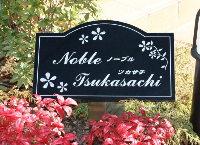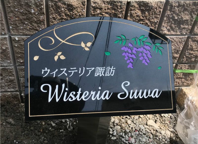 アパート看板 御影石銘板、黒の石でできた看板、文字彫り込み、天然素材の優しさが魅力のマンション看板、会社看板としてもおすすめ