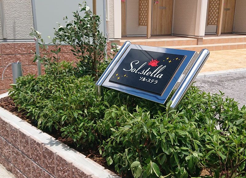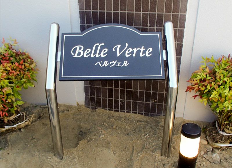 高級感のあるマンション看板、アパート看板 ステンレス銘板、おしゃれなアパート銘板、会社の表札としてもおすすめ