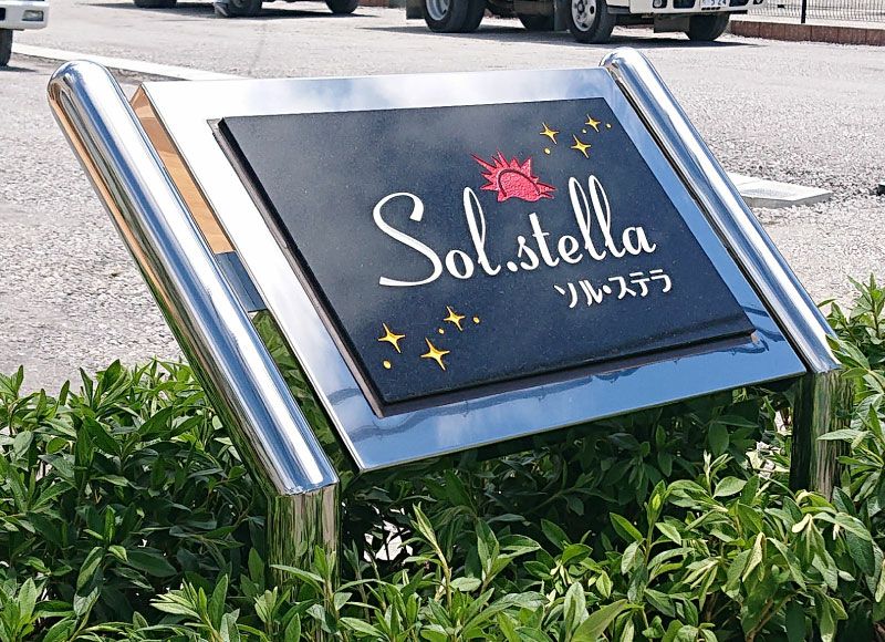 ・フレームウォールサイン ステンレスフレーム 黒御影石銘板