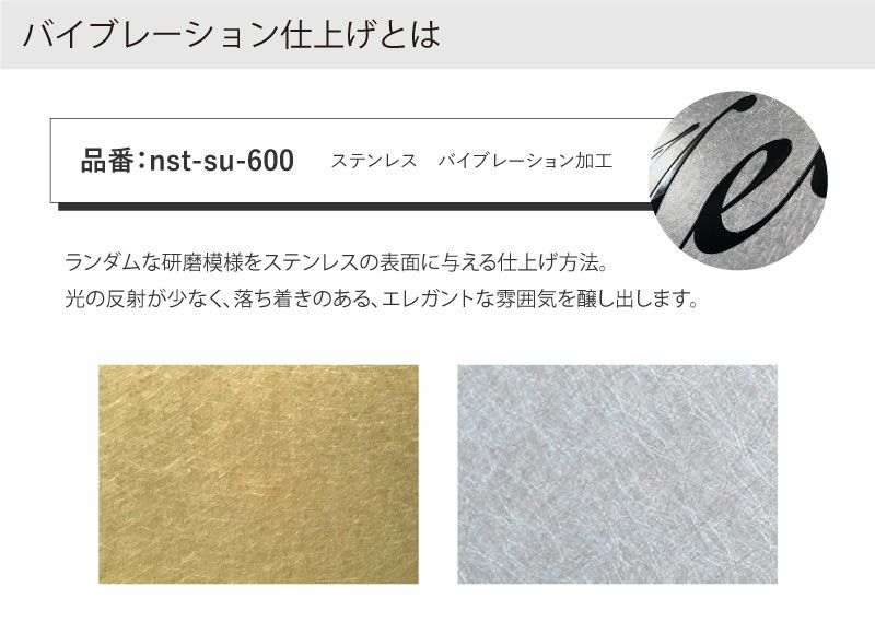 アイアン風のステンレス素材と、クリアな透明アクリルという異素材を組み合わせたおしゃれなステンレス銘板です。
