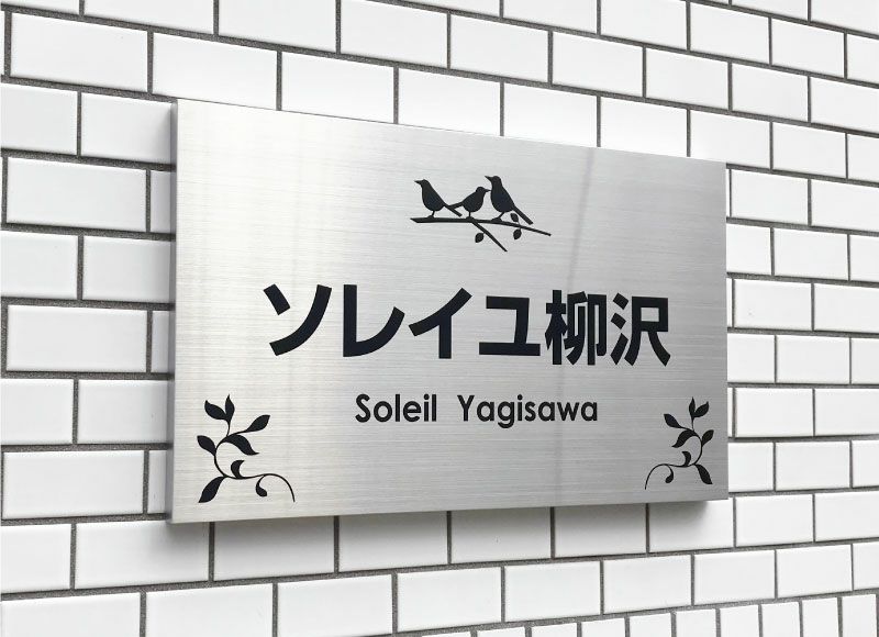 おしゃれなアパート看板 ステンレス銘板、耐久性が良いステンレス素材のマンション看板、会社の銘板としてもおすすめ