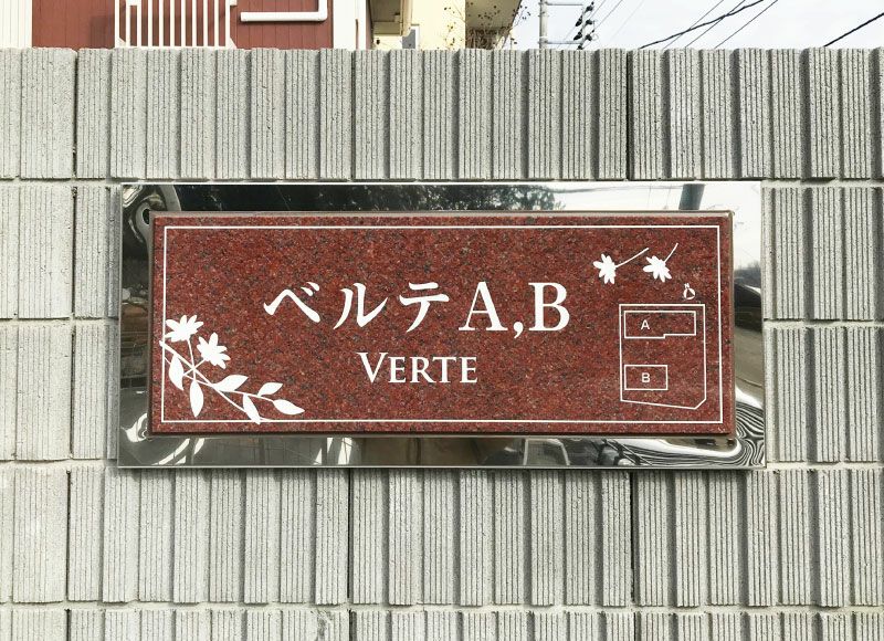 高級感のあるマンション看板、アパート看板 ステンレス切り文字付き、おしゃれな額縁銘板、会社の表札としてもおすすめ