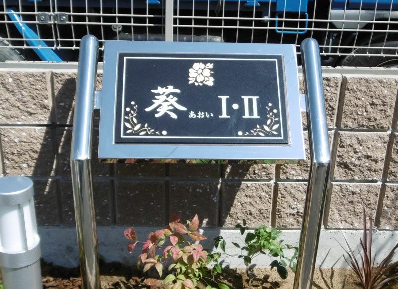 抜き文字看板、ステンレスレーザーカット、重厚感のあるアパート看板、マンション看板、最先端の看板、会社の看板としてもおすすめ