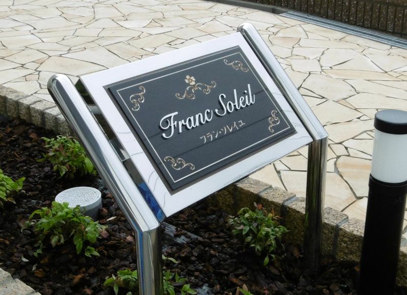 高級感のあるマンション看板、アパート看板 ステンレス銘板、おしゃれなアパート銘板、会社の表札としてもおすすめ