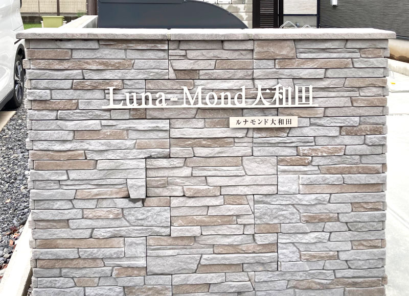 弊社でデザインした建物名称看板を見てお問い合わせ、ご依頼を頂いて以降、同じデザインでお作りさせていただいています。
