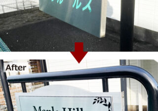 元々の仕様も立体的でゴージャスな銘板ですが、華やかな装いで建物に高級感を与える館銘板となりました。