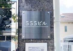 飾り気のない壁も白と黒のステンレス看板でスタイリッシュにガラリと変身。建物のワンポイントとして最適なアイテムの看板