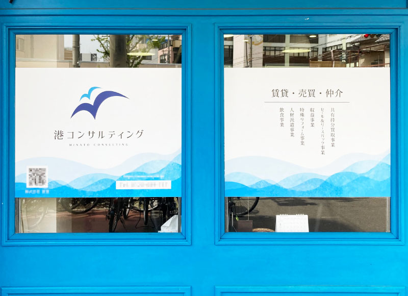 過去に弊社でお作りした物の変更のご依頼でしたので、それと同仕様で窓ガラスの外側からベタ張りでご提案をさせていただきました。
